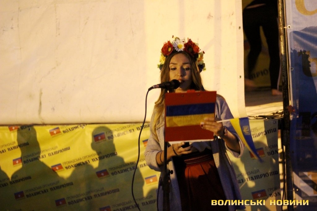 Після цього громадський активіст Володимир Бут-Гусаїм закликав усіх прочитати молитву «Отче наш» за героїв Небесної сотні та тих, хто загинув на Сході за єдину Україну.