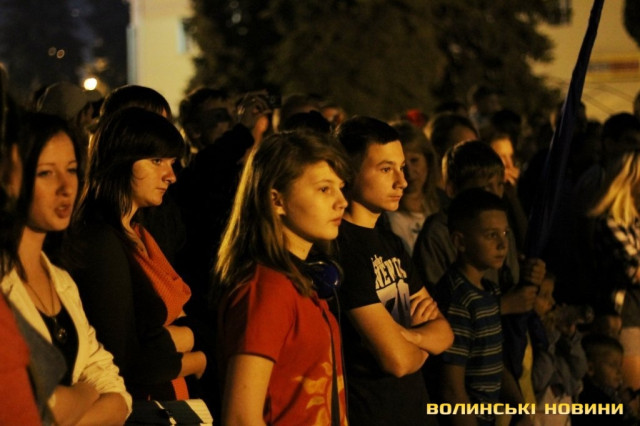 На початку заходу пам'ять загиблих героїв вшанували хвилиною мовчання. Лучанам нагадали, що сьогодні місто прощалося із полеглим на Сході волинянином Андрієм Снітком.