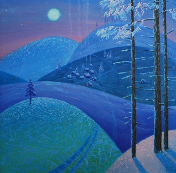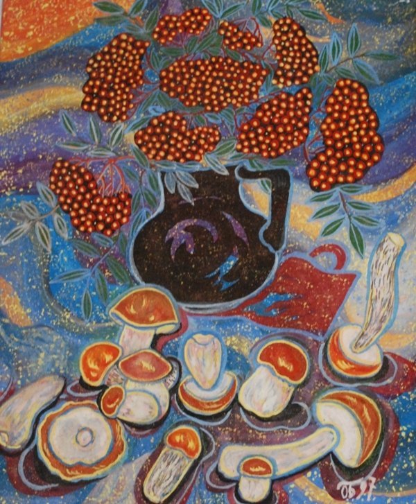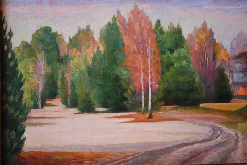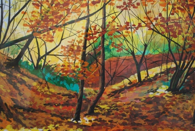 Художниця Зеновія Рубан прийшла разом зі своєю «лісовою школою». Заразом свої картини демонструватимуть її донька Зоряна Рубан-Головчук, учениці Оксана Перепеча та Наталія Чухрін.