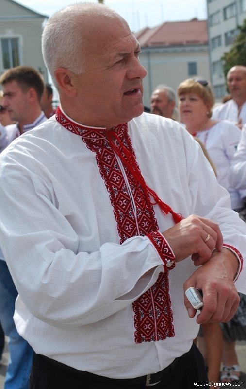 Головний еколог міста і заступник луцького міського голови Борис Сорока у вишиванці і темних окулярах виглядав не менш солідно, аніж у звичному чиновницькому вбранні.