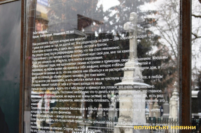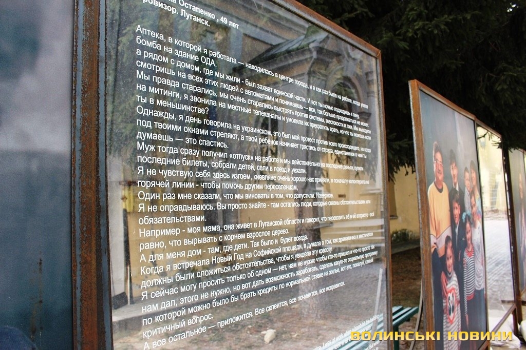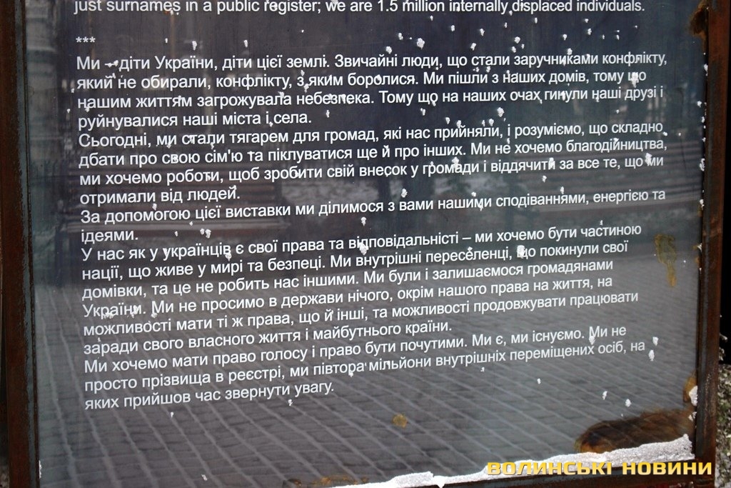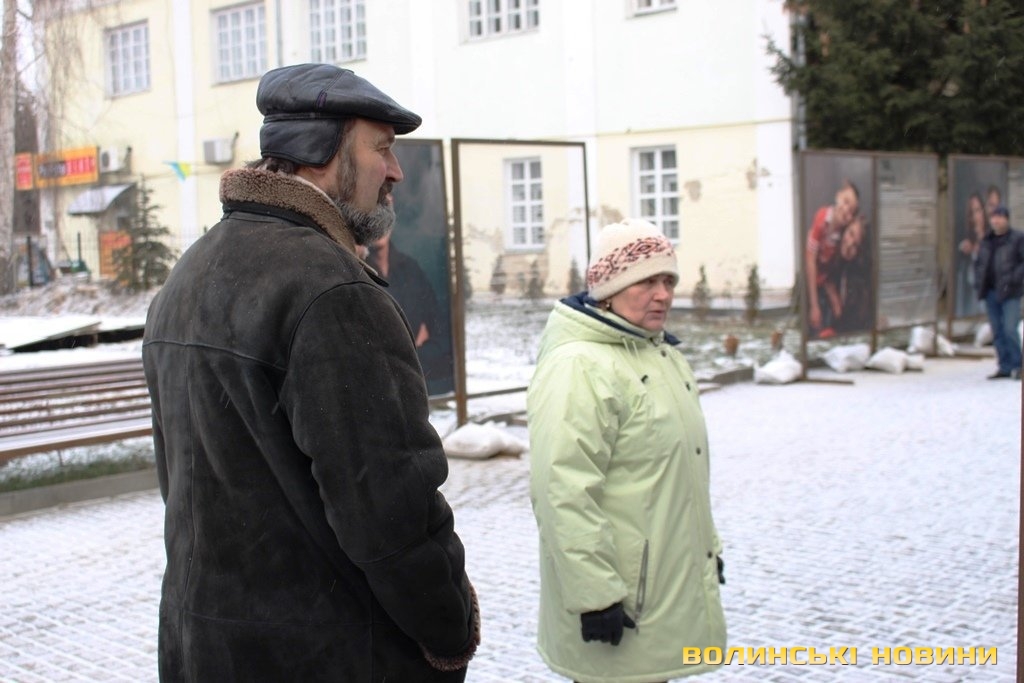Виставка в Луцьку відбулася за сприяння посольства Великої Британії, організатор – голова Волинського відділення Спілки жінок України Галини Даниленко – розповіла, що світлини покажуть в усіх обласних центрах України, й закликала волинян запрошувати до себе в гості на Різдво внутрішньо переміщених осіб.«Багато волинян знають таку біду, як вимушене переселення, бо в останні роки Другої світової війни у нас було чимало переселенців з Польщі, як і моя сім’я. Вони приїхали зовсім в інше середовище зі своєї приватної власності на землі, де нічого не мали. Моїх батьків зрозуміли українці. Тому я надіюся, що так само і зараз волиняни відгукнуться до внутрішніх переселенців і вже відгукуюся, допомагають. Я звертаюся до волинян, щоб вони запросили до себе українців зі сходу на кутю, я теж так роблю. Щоб переселенці знаходили нові знайомства й відчували підтримку та небайдужість оточуючих», – закликала пані Галина.