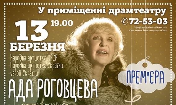 Народна артистка СРСР, народна артистка України Ада Роговцева зіграє роль у приголомшливій французькій комедії, удостоєній премії в галузі театрального мистецтва «Київська пектораль» (режисер Катерина Степанкова).