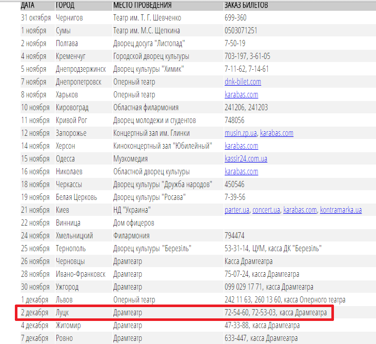 Квитки можна придбати у касі театру на Театральній площі обласного центру або замовити за телефонами 72-54-60 та 72-53-03.
