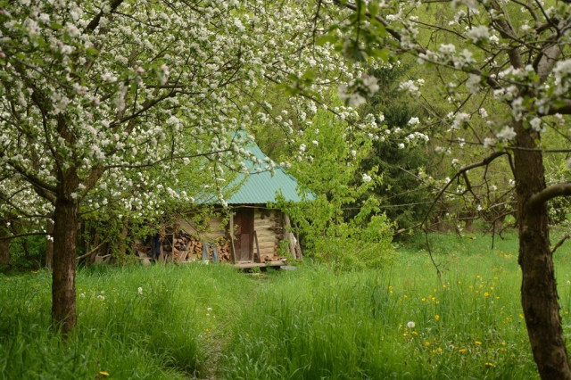 Рубленый домик и маленькая банька с живописным садом вокруг, сколоченная из досок уборная с тазиком в яме и газетой, нарезанной квадратиками, на гвозде, корова, несколько куриц и поросенок — вот и все его нехитрое хозяйство.