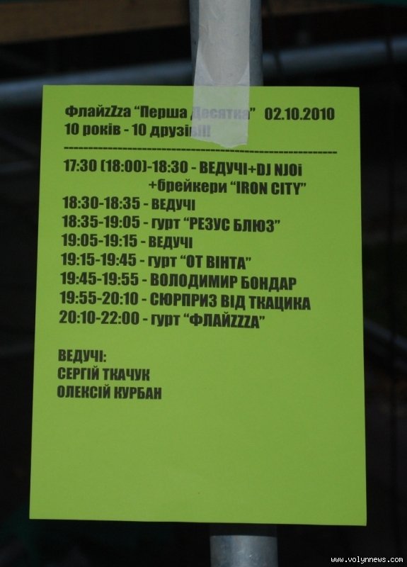 Чотиригодинним концертом в рідному Луцьку відзначив свій день народження луцький гурт «ФлайzZzа» – 1 жовтня колективу виповнилось 10 років.