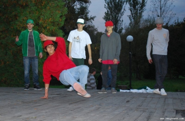 Розпочали концерт на годину пізніше, дещо затягнувши з налаштуванням обладнання, а заодно й дочекавшись поки зійдеться люд. Першим на сцені з’явився луцький ді-джей Njoi. Під його музичний супровід поблизу головної сцени свою майстерність продемонстрували брейкери з гурту «Iron City».