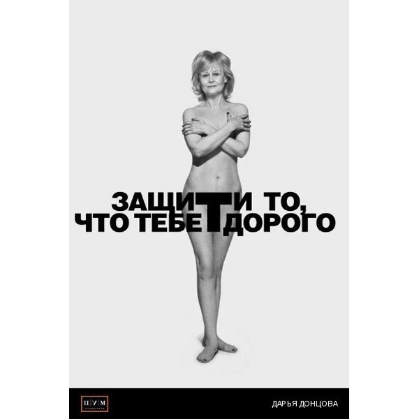 Відома письменниця Дар\'я Донцова разом з десятьма іншими російськими знаменитостями знялася оголеною в соціальній рекламі, спрямованій на боротьбу з раком шийки матки. Акція називається «Защити то, что тебе дорого!».