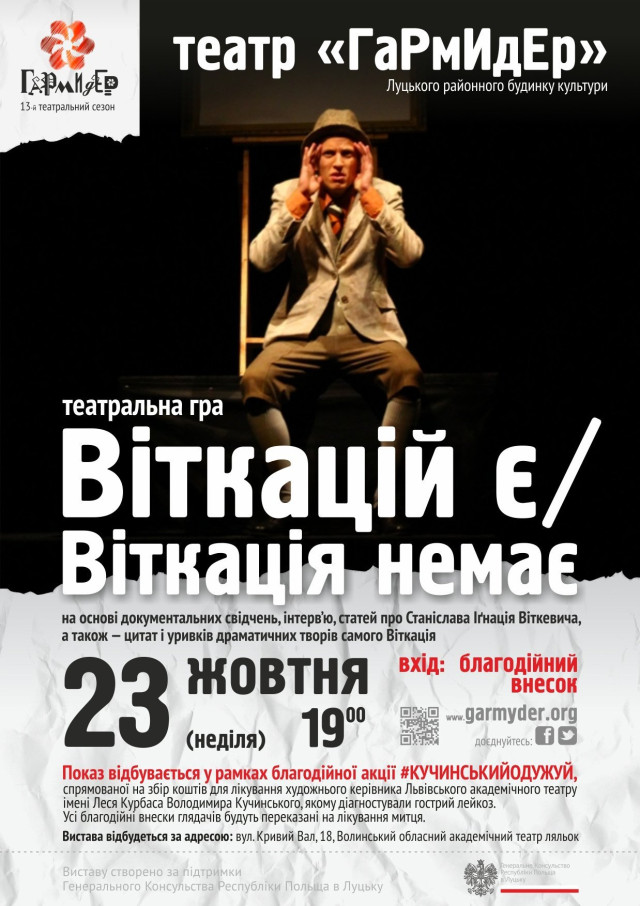 Усі, хто не мають можливостівідвідати виставу, але бажають долучитися до акції, можуть переказати кошти на картку ПриватБанку: 4149 4996 4305 6417 (Онещак Олег Анатолійович).