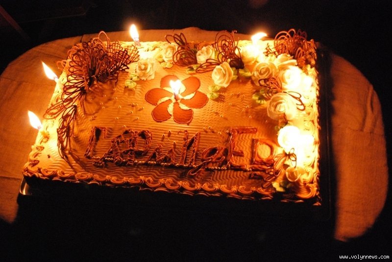 Опісля, до гіркої настоянки приєднали й десерт – великий восьмикілограмовий торт. Відрізати його перший шматок за результатами проведеної напередодні лотереї випала честь ведучій радіо «Луцьк» Ларисі Андрійчук.