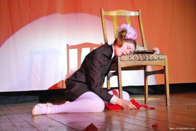 Скориставшись словами вірша «Вертеп» Грицька Чубая, учасники театру зобразили сірість світу, людей, нинішньої дійсності. Дійшло до того, що актори на сцені «їли» папір.