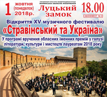 Програма XV музичного фестивалю «Стравінський та Україна» (1-14 жовтня 2018 року)1 жовтня. Луцький замок. 18.00