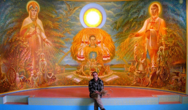 Фото В.Крижанівського на фоні розписів храму - https://www.ridivira.com/uk/istoriya/providnyk-hriadushchoi-ery-khudozhnyk-krїyzhanivskyi