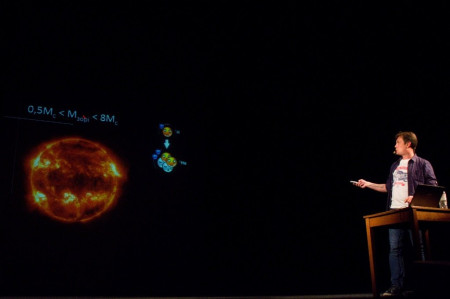 Основну ж частину лекції доповідач, відповідно до теми, присвятив все ж таки зіркам. Присутні довідалися, що існують різні типи зір, деякі з яких можуть обертатися навколо своєї осі з феноменальною швидкістю. Також зорі можуть змінювати свої фізичні характеристики, хімічний склад і внутрішню будову.