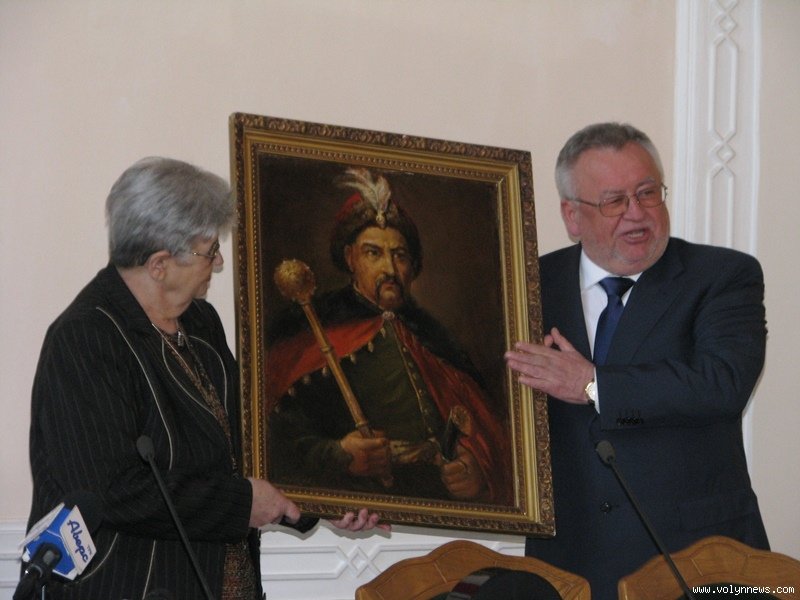 Вручаючи іменну стипендію головному хранителю Волинського краєзнавчого музею Наталії Пушкар, губернатор вирішив подарувати цьому закладу картину із власної колекції.
