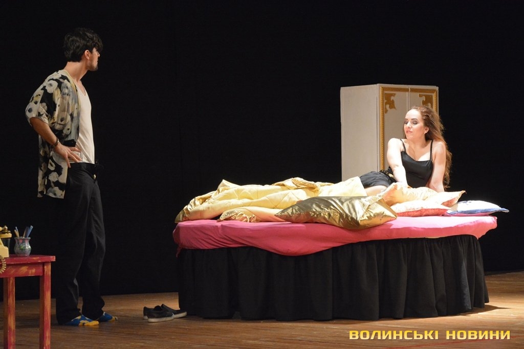 Вистава від київських акторів для глядачів віком «18+» відбулася в Луцьку. Основою сюжету стали перипетії сімейних стосунків, які пронизані еротичними розмовами, інтригами, скандалами, і все це відбувається у комедійному вирі відносин, впродовж яких сімейні пари йдуть на зраду, але все ж повертаються до свого кохання.