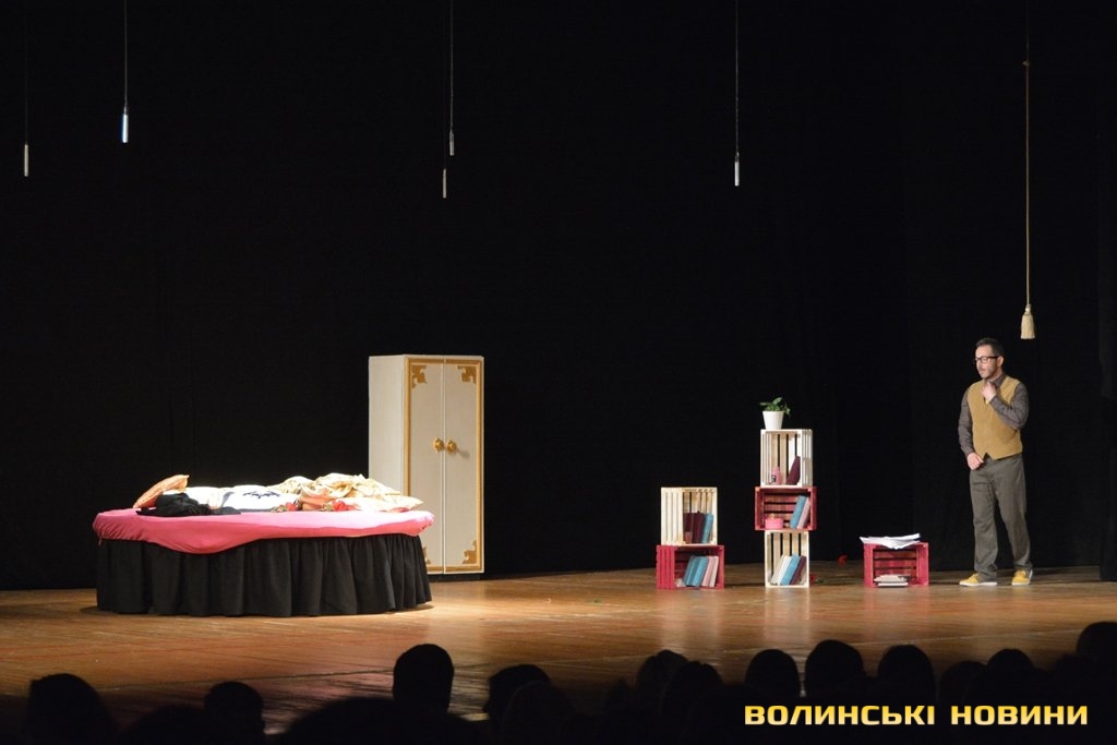 Вистава Рея Куні «Роздягайся – поговоримо» театру «Тисячоліття» з Києва відбулася у Волинському обласному академічному музично-драматичному театрі імені Тараса Шевченка.