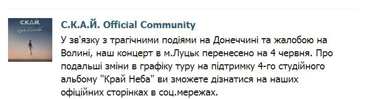 Концерт С.К.А.Й у Луцьку знову переноситься