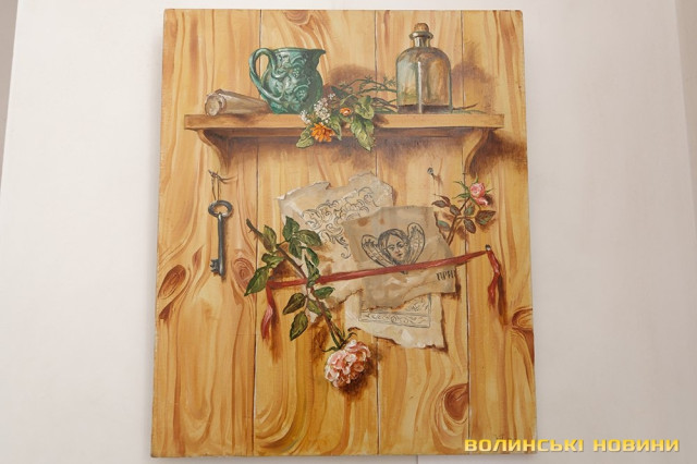 Також на виставці є нагода побачити роботи, виконані у авторській методиці – живописі на шкірі та із застосуванням енкаустичних фарб.
