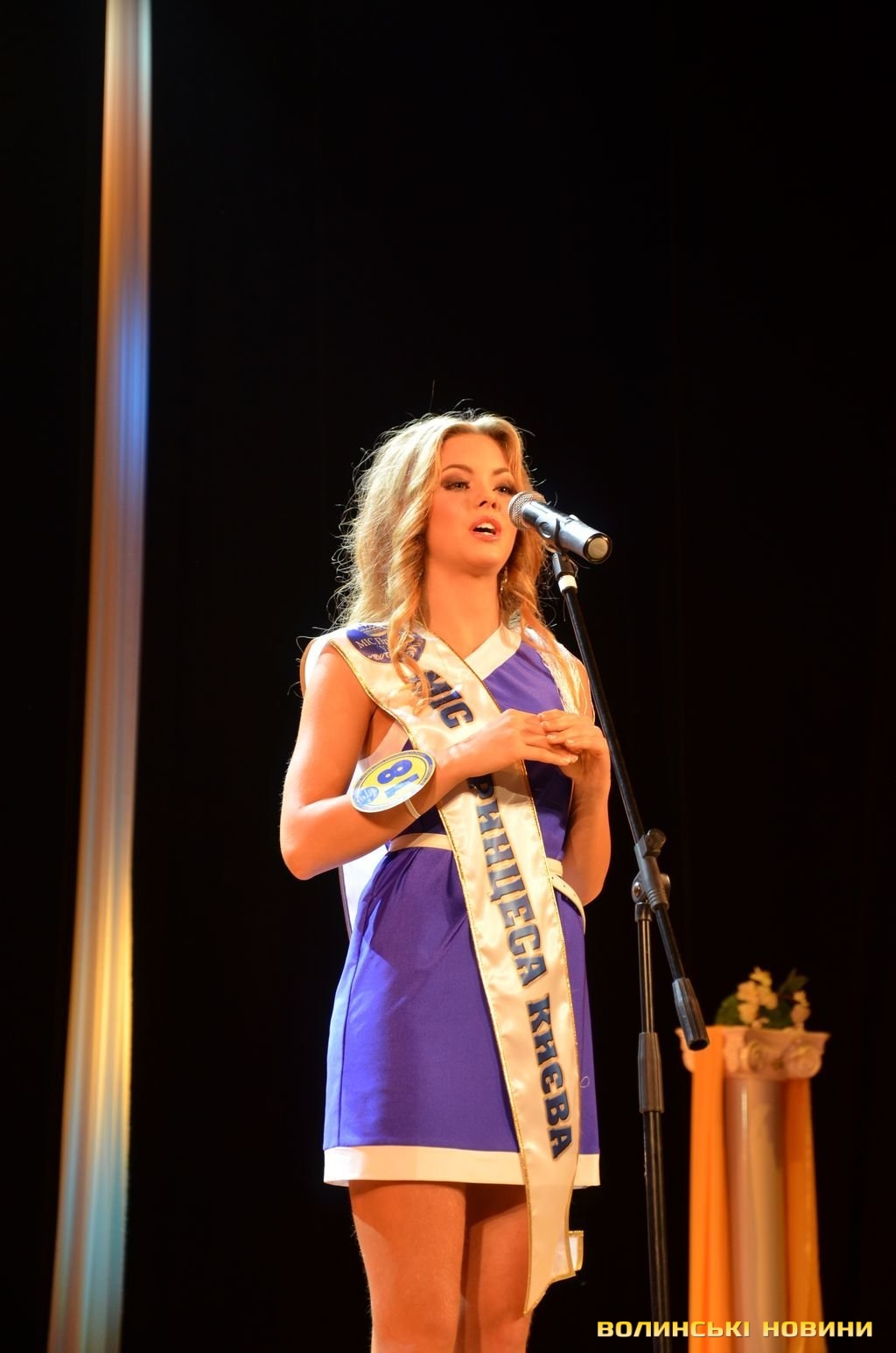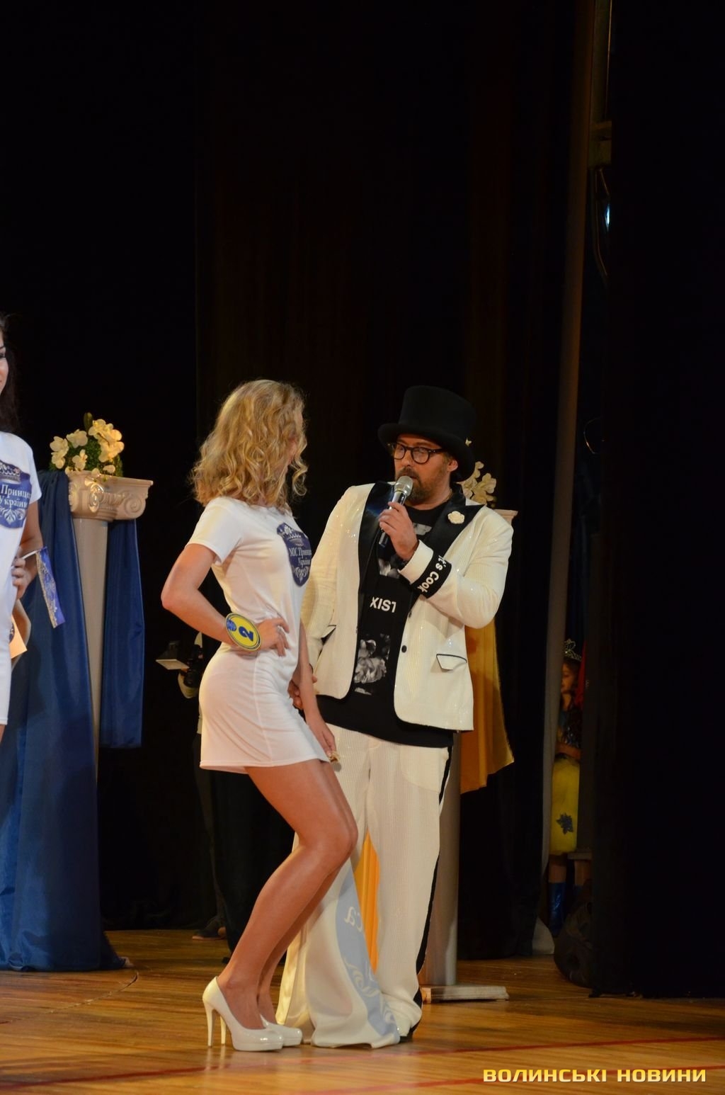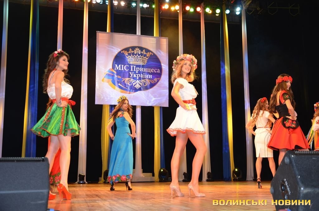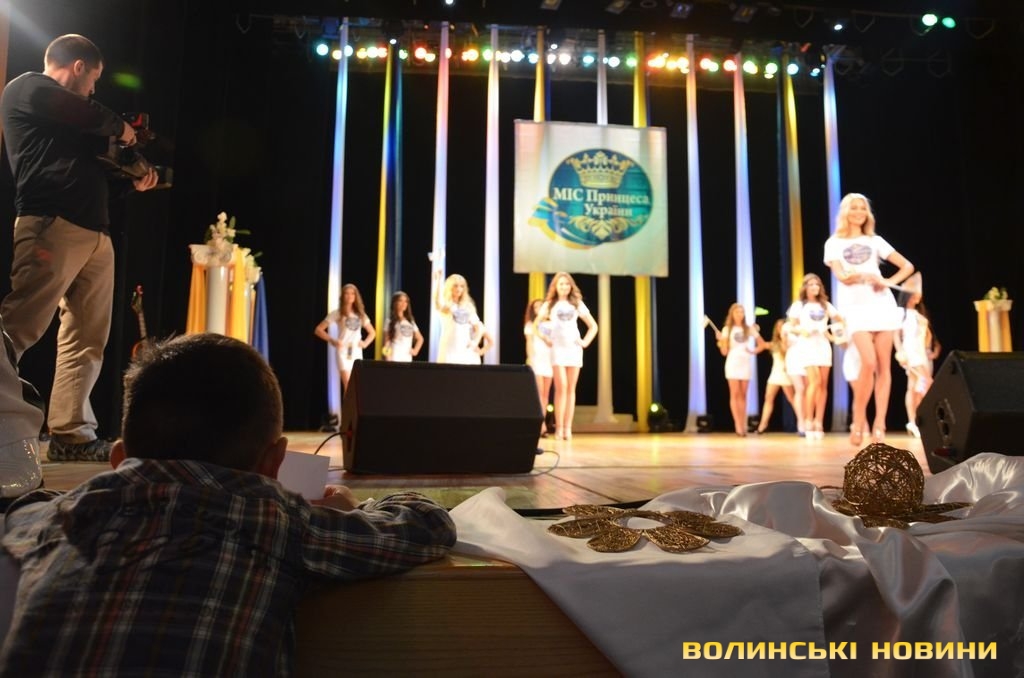 Традиційно конкурс розпочався з дефіле та знайомства з учасницями.Здебільшого, учасниці розповідали про свої хобі та життєві принципи. Одна з учасниць заявила, що займається «моделінгом», що викликало чимале здивування ведучого дійства Дмитра Коляденка. «А що це таке?», - здивовано запитав він. Гаряче підтримала луцька публіку Міс принцесу Донецька – дівчина з сяючою посмішкою привітала зал української і сказала, що їй дуже подобається на Волині.А юна Міс принцеса Києва вирішила бути оригінальною та розповіла про себе віршованими рядками.Після чого на сцені з’явився відомий український виконавець Тарас Петриненко. Артист зауважив, що попри те, що в країні триває війна, не слід опускати руки та впадати в депресію. Потрібно допомагати своїм воякам та разом йти до перемоги. З його слів, не варто і скасовувати концерти та патріотичні дійства – мовляв, це згуртовує людей, додає їм духу.Співак виконав декілька пісень, серед яких були ті, що він співав на Майдані у Києві під час Революції гідності. А під його пісню «Україно!» встав весь зал, співаючи разом з ним.І знову на сцені з’явились 18 красунь – довгоногі кралі дефілювали в національних вбраннях. Варто зауважити, що це не просто вишиванки – кожна з суконь по-своємо унікальна і підбиралась для окремо для кожної учасниці. В когось це була довга вечірня сукня, інші ж дефілювали сценою в коротких платтях.Не забарились і брати Яремчуки. Заспівавши для лучан давно знайомих пісень, вони побажали присутнім миру, щастя та злагоди у їх житті.А згодом поступились місцем на сцені довгоногим красуням, які дефілювали в купальниках.Вихід супроводжувався гучними оваціями – не гіршими, ніж під час виходу в національних нарядах.