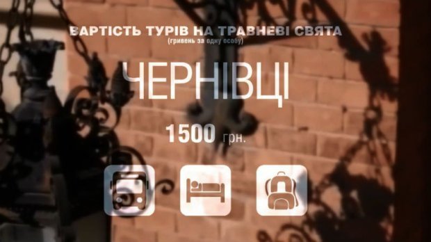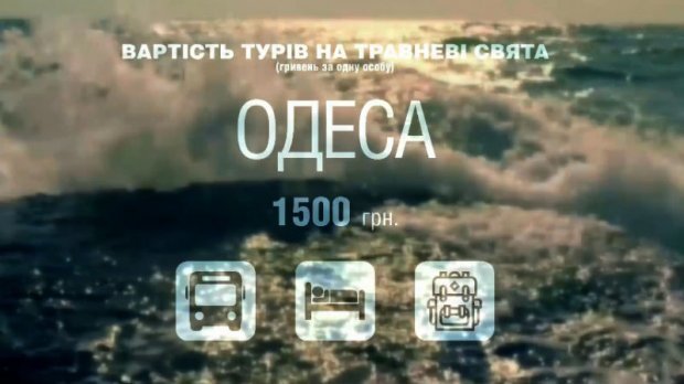 Так, поїздка до Одеси на травневі свята коштує у межах півтори тисячі гривень на одну людину. В ціну входить, переїзд потягом чи автобусом, проживання в готелі за 2 доби та екскурсійна програма.