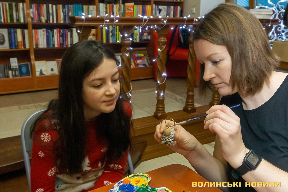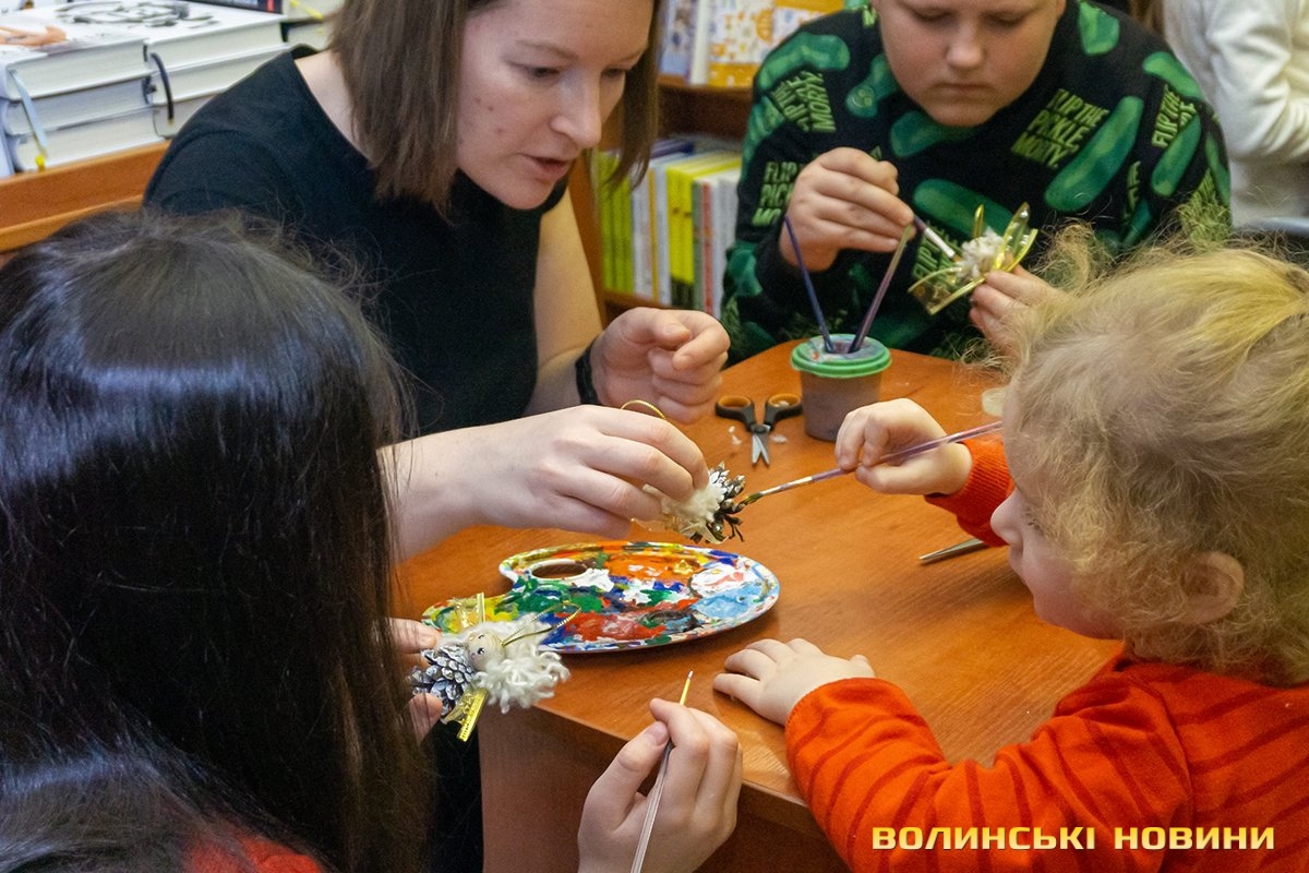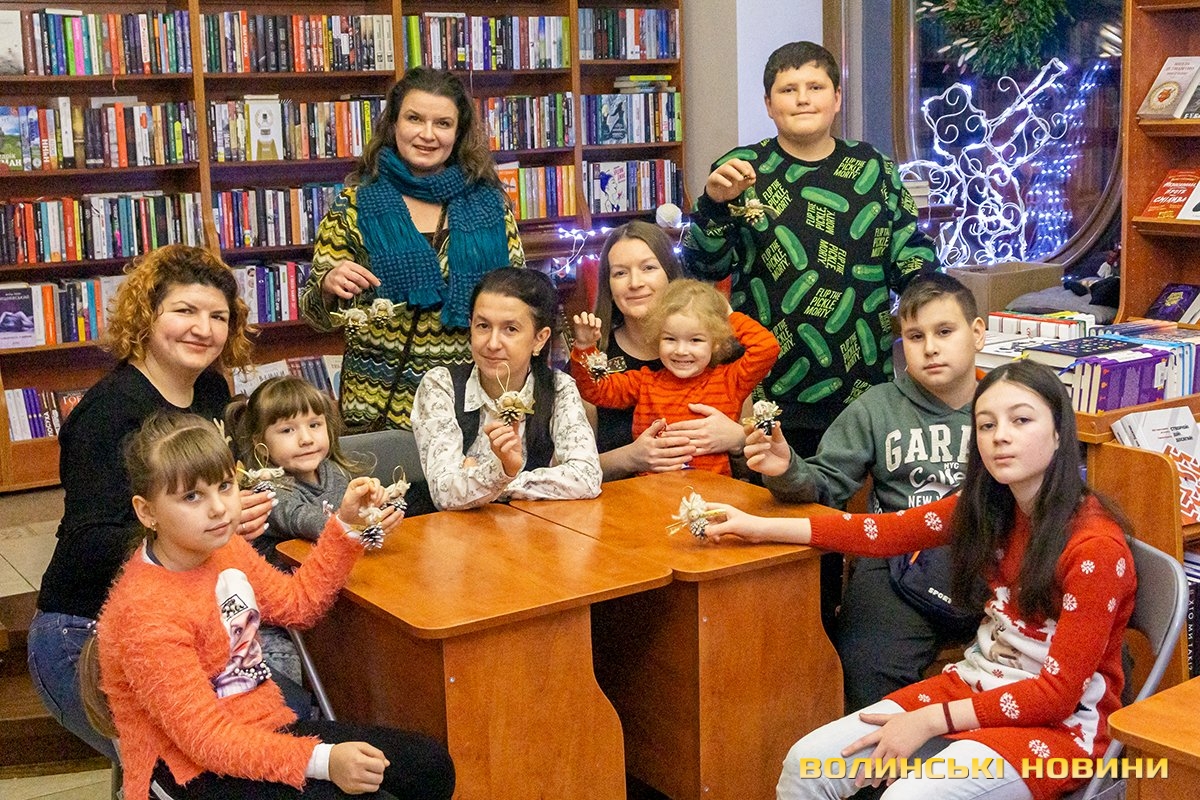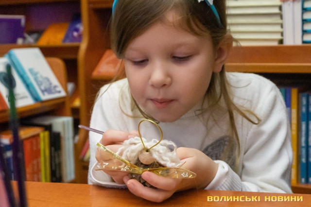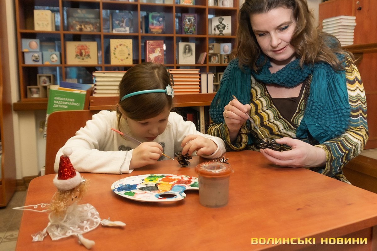 У луцькій книгарні «Є» відбувся традиційний суботній майстер-клас. Цього разу його темою були новорічно-різдвяні свята — діти виготовляли прикраси-підвіски у вигляді янголят.