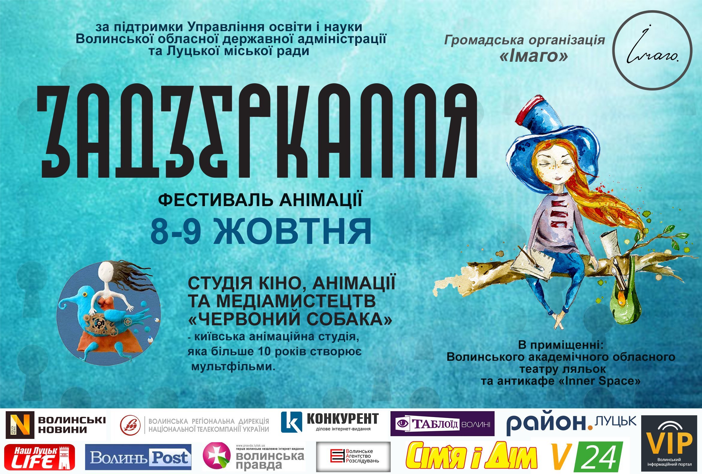 У Луцьку два дні триватиме анімаційний фестиваль «Задзеркалля». Всіх охочих його відвідати запрошують 8 та 9 жовтня у Волинський академічний обласний театр ляльок та антикафе «Innerspace».