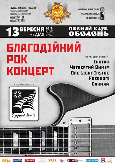 Благодійний рок-концерт на підтримку Креативного простору "Озерний вітер" відбудеться у Луцьку. Про це повідомляють організатори заходу.