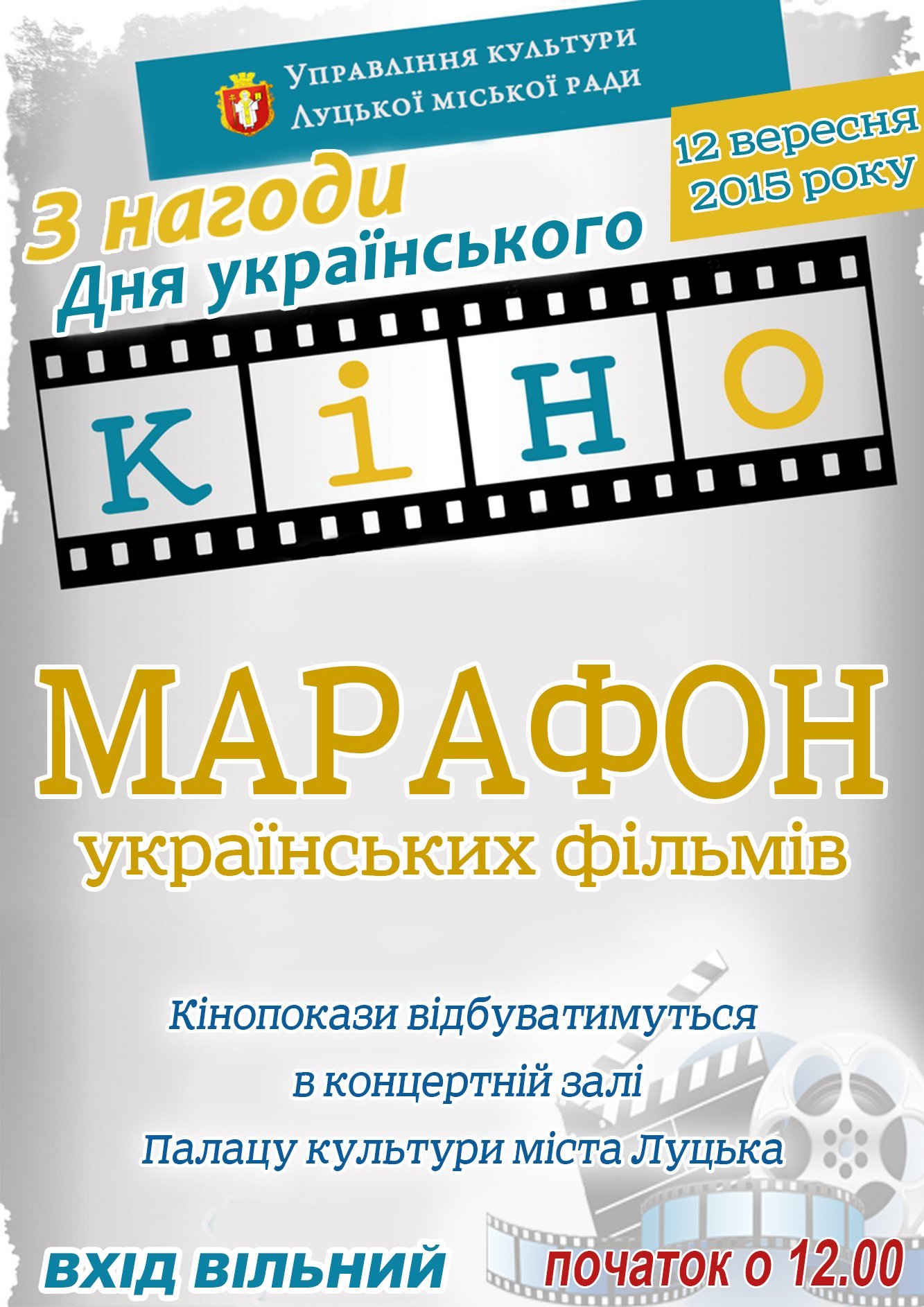 «Марафон українських фільмів», який влаштують у Луцьку вже завтра, 12 вересня, організатори приурочили до Дня українського кіно, – повідомили в Управлінні культури Луцької міської ради.