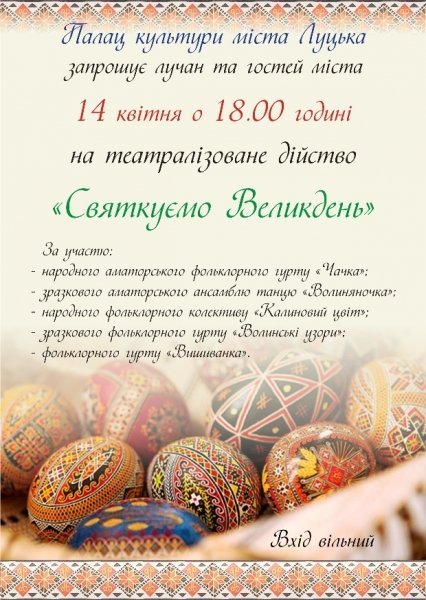 Захід «Святкуємо Великдень» відбудеться 14 квітня о 18.00 у Палаці культури.