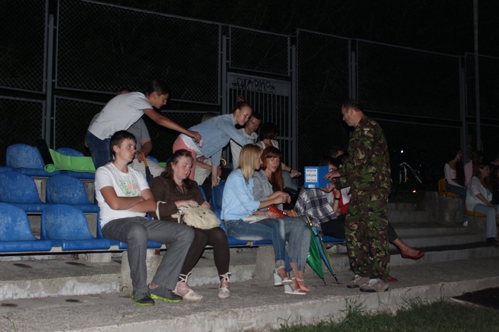 Також під час перегляду тривав збір коштів для бійців, які боронять країну на Сході.