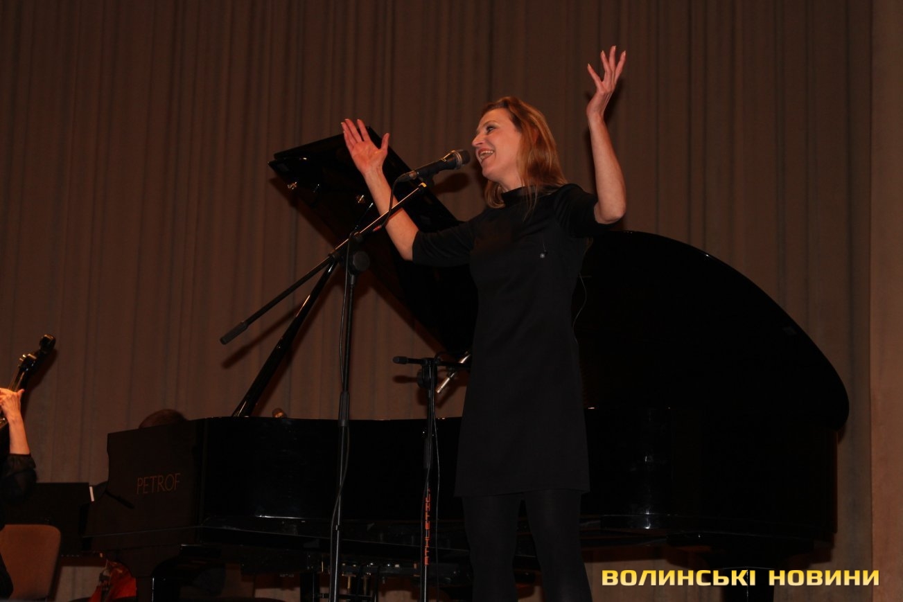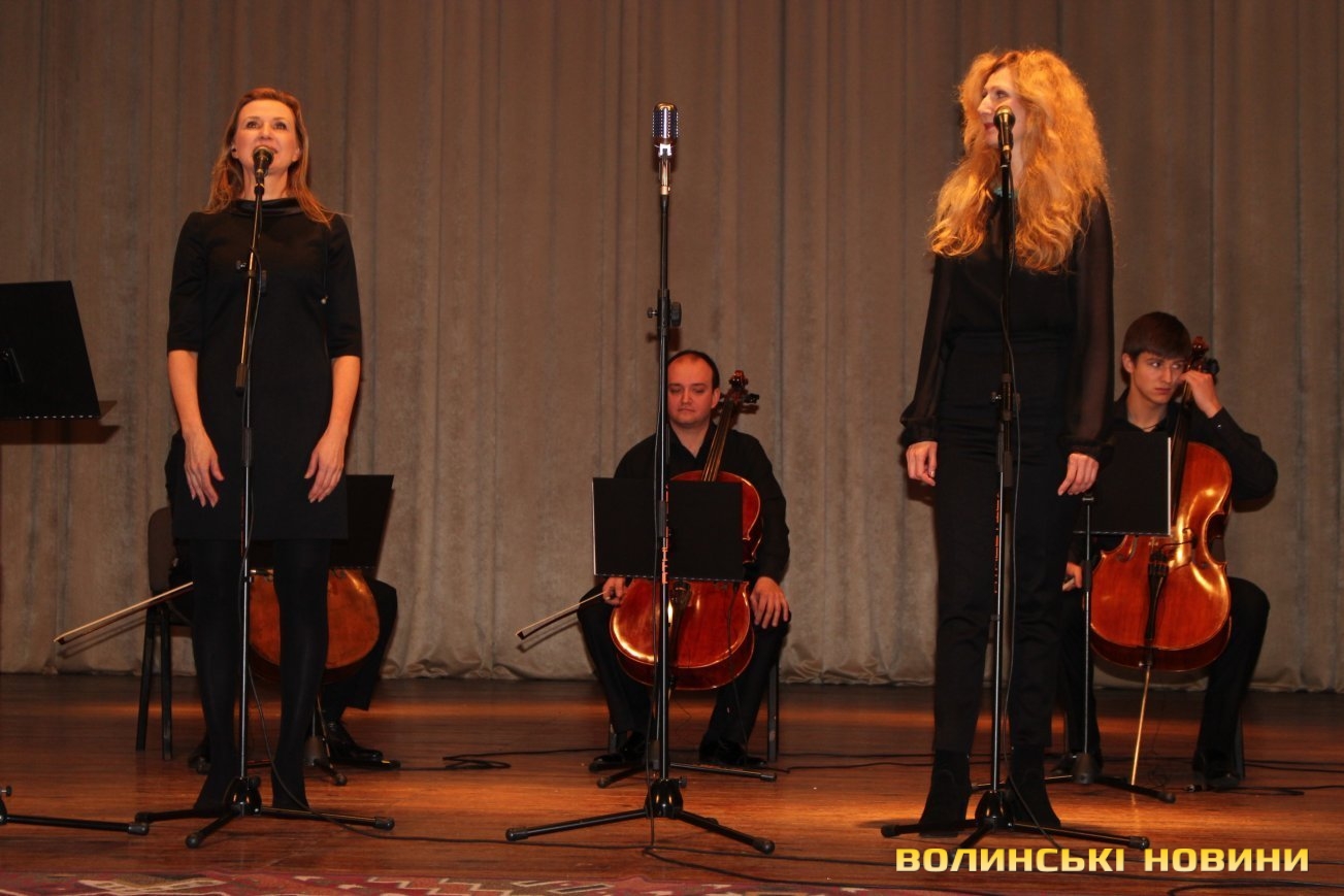 Друга частина вечора пройшла у товаристві вокального дуету – Галі та Лесі Тельнюк. Лучани почули не лише пісні, тексти яких написала Оксана Забужко, а і вірші Тараса Шевченка, Василя Стуса у музичному виконанні. Буквально підірвала і поставила на ноги зал пісня на вірш Ірини Цілик «Повертайся живим», – люди співали в унісон, плескали в долоні і плакали. Після неї вже не сідали, – знову разом із сестрами заспівали «Рядок із автобіографії», яким і завершився вечір.