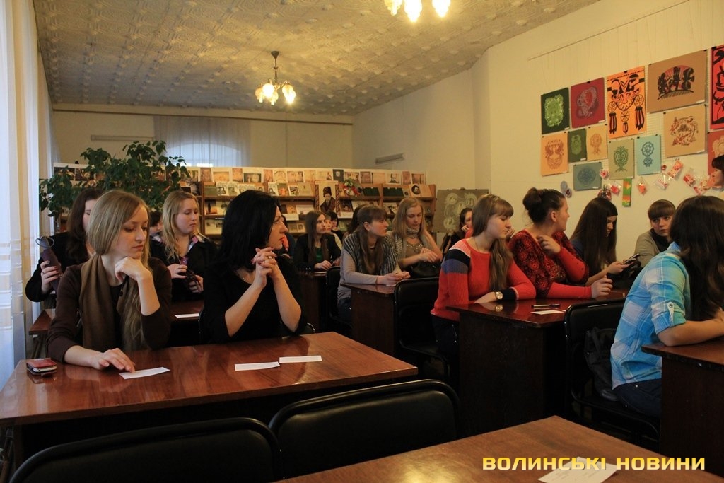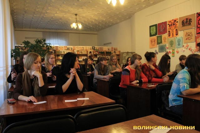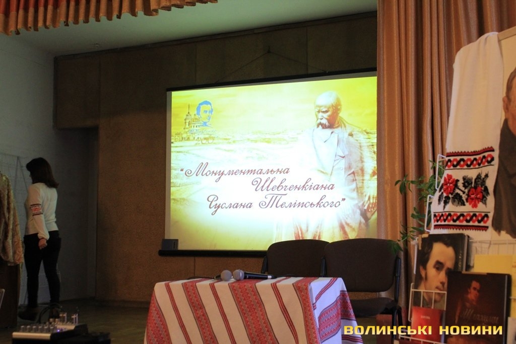 Творча зустріч з шевченкознавцем Русланом Теліпським відбулася у приміщенні Волинської обласної бібліотеки для юнацтва. Захід під назвою «Світ з Шевченком», на який запросили студентів Луцького педагогічного коледжу та журналістів, присвятили 200-річчю від дня народження великого Кобзаря.Так, спочатку гість запропонував присутнім ознайомитись із власним незвичайним хобі, переглянувши 20-хвилинний відеоролик. Тоді усі охочі могли запитати у Руслана про все, що цікавить – починаючи від Тараса Шевченка і закінчуючи правилами автостопу.