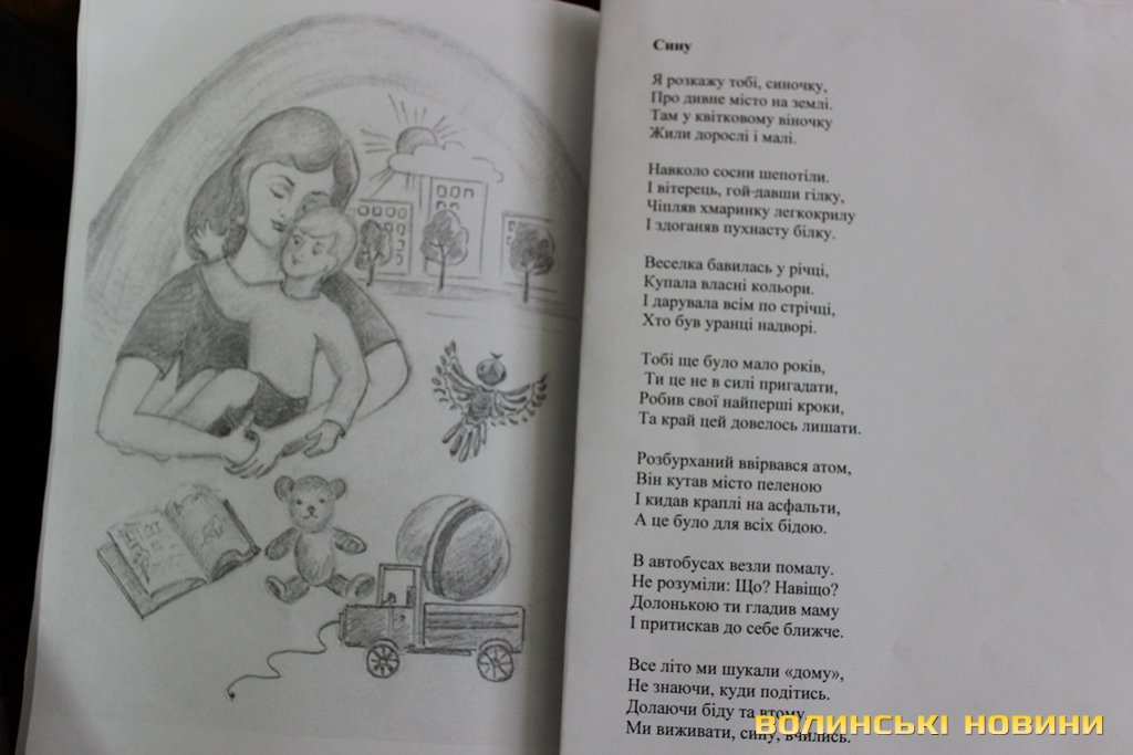 Він показав і копію чорнового варіанту збірки. З його слів, ілюстрації належать учням Лариси Ковальчук, яка викладає образотворче мистецтво у школі.