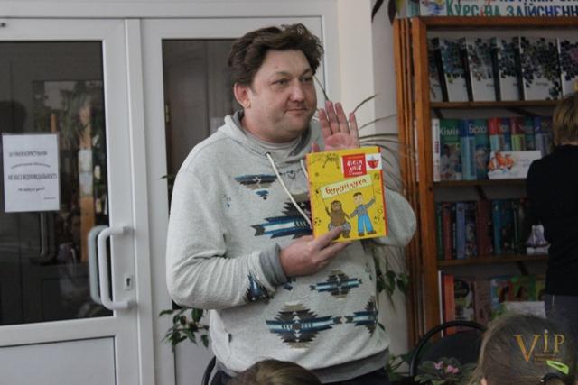 Багато хто знає цього письменника, як дорослого, тож він зачитав кілька своїх віршів про Майдан. Також він зауважив, що пише дитячі книги завдяки своїм чадам, вони ж і підказують йому сюжетні лінії.