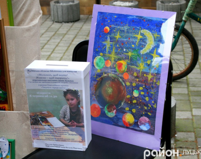 А 8 червня у Волинській бібліотеці для юнацтва відкрили персональну виставку юної художниці під назвою «Молимось, щоб жити! Живемо – щоб творити!». Тут представили 24 роботи Анни Хільчук, які мають на меті привернути увагу громадськості. Ці картини не продають, проте кожен небайдужий може допомогти дівчинці зібрати кошти на лікування, поклавши їх у скриньку, що стоїть поруч з картинами. Виставка у Волинській бібліотеці для юнацтва триватиме упродовж місяця.