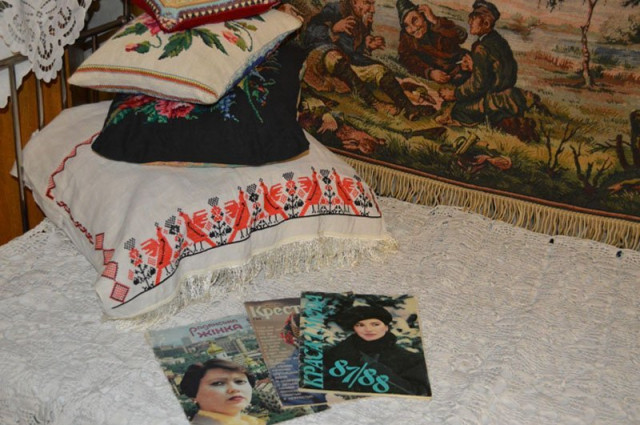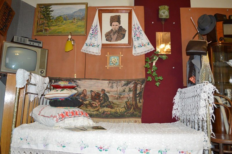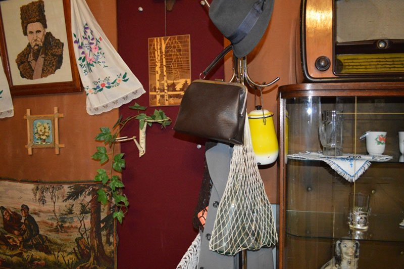 Є на виставці меблі, побутові речі та техніка, виготовлені в 40-80-их роках XX ст., зібрання платівок для програвача, журнали повоєнних часів, радіоприймачі, радіола, телевізор різних років випуску.