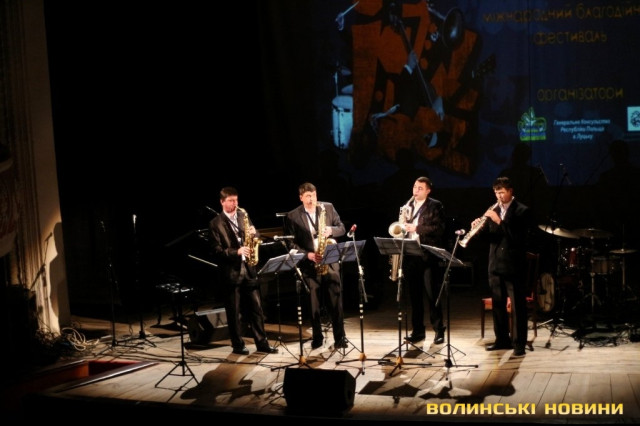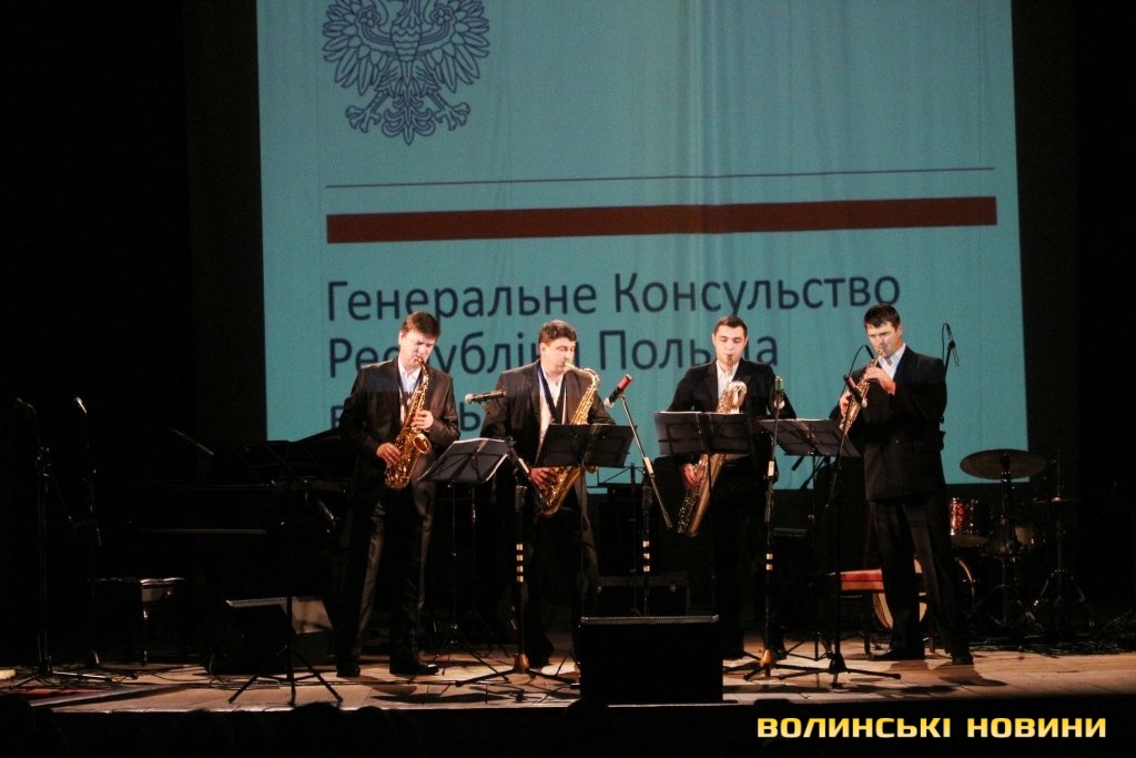 Відкрили луцьку частину фестивалю, який відбувається у містах Польщі та України, джазмени з луцького Квартету саксофоністів. Колектив був заснований у 2013 році. До нього входять Микола Редько (сопрано-саксофон), Олександр Богдан (альт-саксофон), Валентин Окапінський (тенор-саксофон) та Василь Максімов (баритон-саксофон). Джазмени здобували неодноразові гучні оплески публіки, виконуючи знані джазові стандарти.