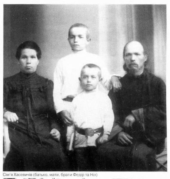 Народився Ніл Хасевич 1905 року у сім’ї диякона місцевої церкви у селі Дюксин Костопільського повіту Волинської губернії. Двоє братів Ніла стали священиками на Волині, а він сам навчався у духовній семінарії і перші уроки малювання одержав у іконописній майстерні.Трагічна подія на залізничному переїзді забрала у 14-річного юнака матір, а його самого зробила калікою – Ніл втратив частину лівої ноги. Бійцівський характер проявив себе вже тоді: хлопчина сам змайстрував собі протеза і продовжив навчання у майстерні Василя Леня у Рівному. Компенсація за нещасний випадок стала оплатою за навчання у Варшавській академії прикладних мистецтв у майстерні відомого польського графіка, професора Владислава Скочиляса, у викладачів живопису Мілоша і Мечислава Катарбінських.