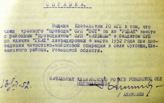 Водночас це стало і смертельним вироком для мистця. З Москви надійшло розпорядження «пресечь антисоветскую деятельность» художника-патріота і була створена спеціальна опергрупа, яку очолив капітан держбезпеки, заступник начальника відділення 2 відділу УМДБ Рівненської області (пізніше заслужений пенсіонер) Борис Стекляр. На пошук підпільника були спрямовані чималі зусилля: збір інформації, нагороди стукачам, цілодобове спостереження за десятками людей. Та все-таки прикрий випадок прискорив викриття однієї з останніх на Волині криївок біля села Сухівці, за 12 км від Клеваня Рівненської області. Холодного березневого дня 1952 року Ніл Хасевич та ще два його побратими Вячеслав Антонюк «Матвій», Антон Мельничук «Гнат» розділили смерть на трьох з особистої зброї і не здалися ворогу живими. Досі невідомо, де знаходиться поховання мистця. Тіла загиблих ще протягом трьох днів після смерті були виставлені в Клевані для глуму і деморалізації населення за звиклою практикою енкаведистів, а потім вивезені у невідомому напрямку.Його ім’я почало повертатисядо земляків тільки із здобуттям Незалежності Україною. На початку 90-х рр. Волинський і Рівненський краєзнавчі музеї провели виставки творів художника, свого часу вилучених співробітниками радянських карально-репресивних органів у вбитих чи захоплених повстанців. Було впорядковано місце загибелі Ніла Хасевича і поставлено спочатку дерев’яний хрест, а згодом гранітний пам’ятник. З’явилися чисельні дослідження істориків, публікації журналістів. Київський режисер М.Ткачук відзняв документальний фільм «Здобути, або не бути» про долю мистця-повстанця.Вдивіться ще раз у очі Ніла Хасевича. Сумні очі, повні філософської мудрості, спокою мислення, людини, приреченої нести свій хрест жертовності і боротьби до останку. Людини, приреченої боротися з ворогом лише різцем і долотом, та сила його мистецтва надихала його побратимів та змушувала страхатися ворогів України. Мистецтво Ніла Хасевича досі бореться за Незалежність України. Герою Слава!За матеріалами сайту Галереї мистецтв НСХУ.