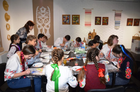 Мистецтва малярства на склі дітей навчає народна майстриня Наталія Чубко. Хлопчики та дівчатка захоплено працюють над іконою Божої Матері – акуратно переносять контури на скло, надають образу барв. Така робота потребує неабиякої уважності та витримки. Адже будь-який хибний рух пензлика виправити практично неможливо. Складність техніки й у тому, що картину малюють у дзеркальному відображенні.