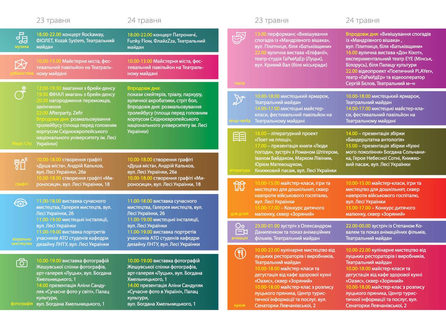 Особливо цікавим буде створення зони chill out на місці колишнього фонтану на центральній площі Луцька. Крім того, гості фестивалю побачать незвичайні інсталяції, які покажуть вулиці міста з незвичної точки зору.