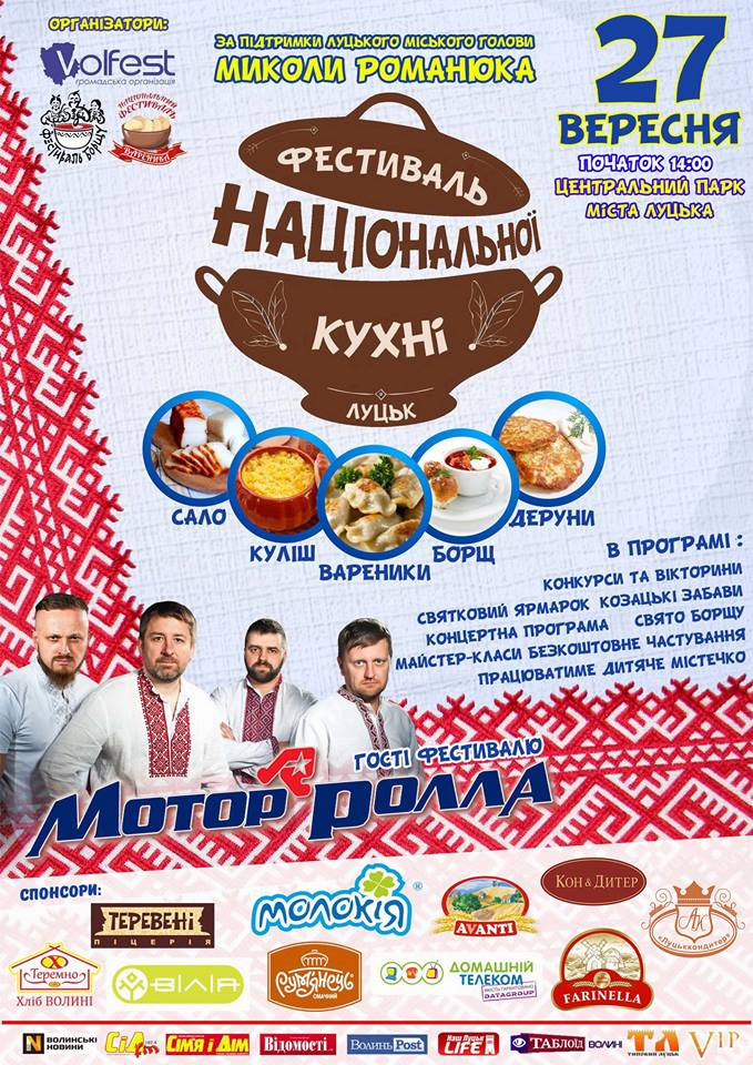 Сімейне свято «Фестиваль національної кухні» відбудеться у Луцьку вперше 27 вересня о 14:00 в Центральному парку міста, – інформують організатори.