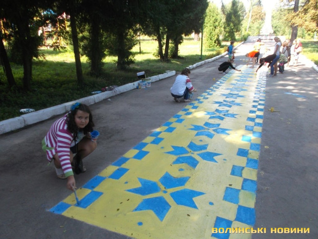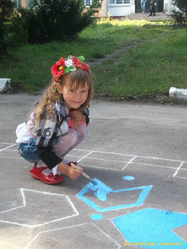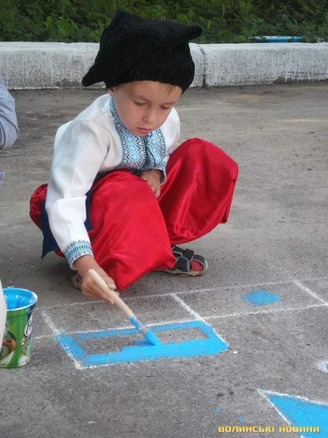 За єдність України виступили наймолодші рожищани – намалювавши на асфальті рушник єднання у національних кольорах.