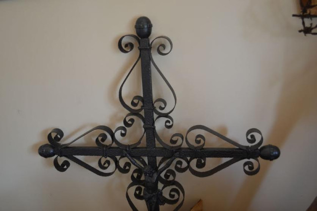 На фото: Рідкісний випадок: на раменах хреста увіковічили знаряддя вбивства — німецькі ручні гранати часів Першої світової війни.