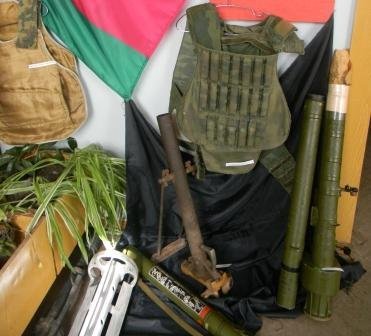 Також відвідувачі побачать атрибутику терористичних організацій «ДНР» та «ЛНР» (стяги, агітаційні листівки, карти, ваза, нашпигована металевими предметами, яка не встигла здетонувати тощо). Чимало фрагментів сучасної зброї (ручний бронетанковий гранатомет «Муха», ПЗРК «Ігла», касета снаряду реактивної системи залпового вогню «Смерч», автомат Калашникова, саморобний міномет, військове спорядження (шоломи, бронежилети).
