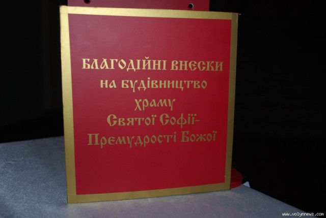 Збирали у 2011 році внески для побудови храму Святої Софії Премудрості Божої Волинського національного університету. Поки що суму благодійних пожертв не підрахували. Оприлюднити її обіцяють незабаром.