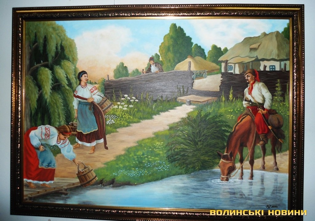 «До Луцька я привіз 18 своїх картин: тематику «Вірний джура», «Бій з татарами», «Біля водопою», «В ніч на Івана Купала», «На Січ», «Запорожці», «Благословення матері», «Молодий отаман», «Край дороги», «Бій з татарами», «Нескорені». Обрав тему козацтва, бо вона актуальна і сьогодні та надихає людей. Зазвичай я сюжет та ідеї для тем беру з української літератури, коли читаю твори класиків, то уявляю події. Також гарним джерелом натхнення є народні пісні.