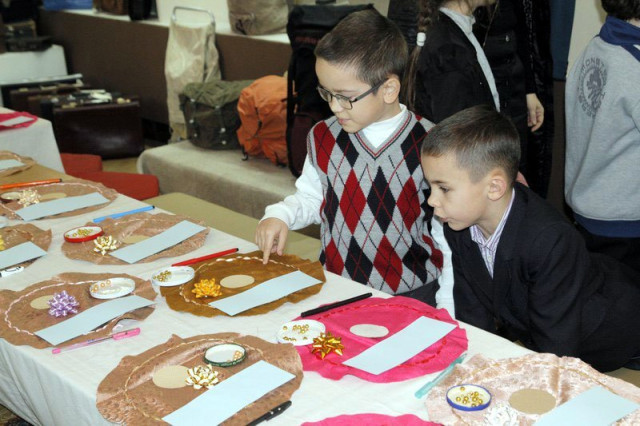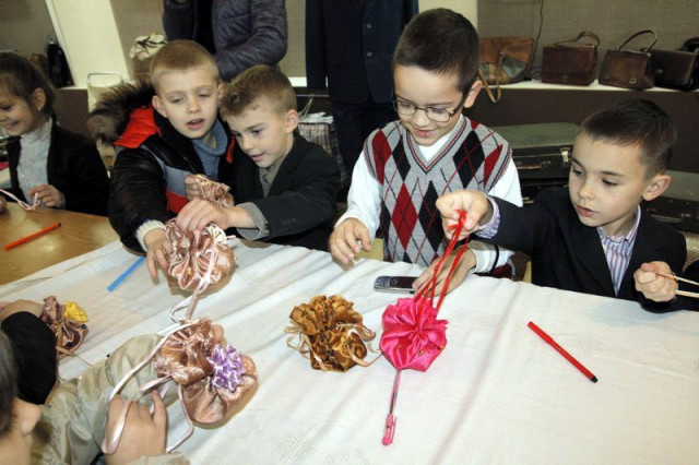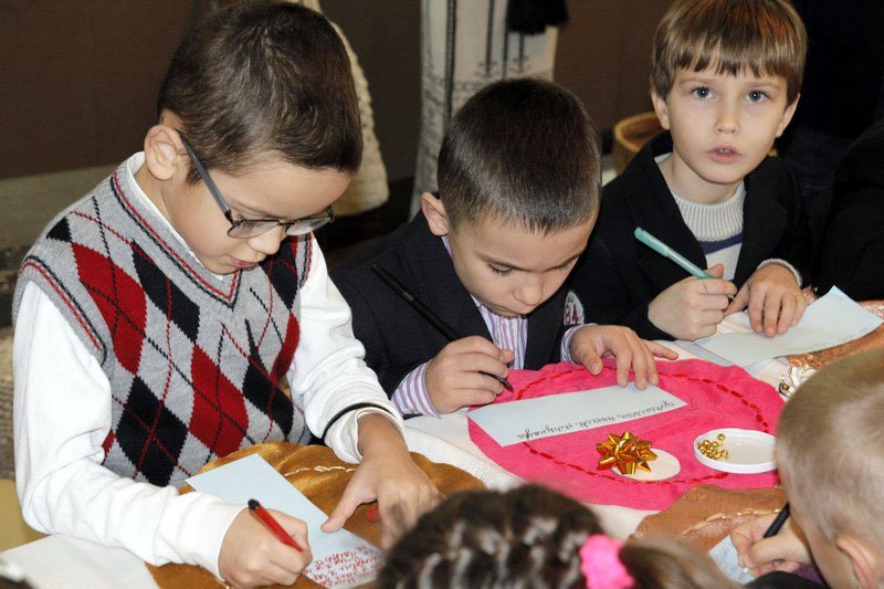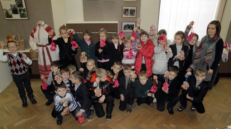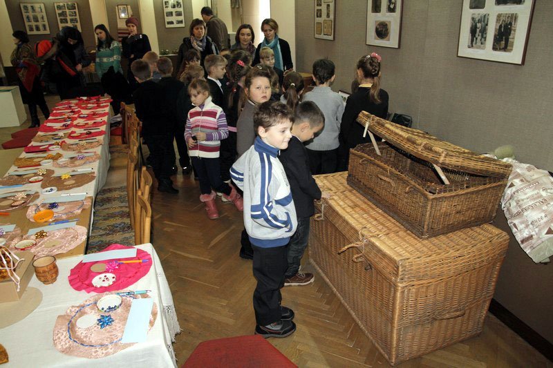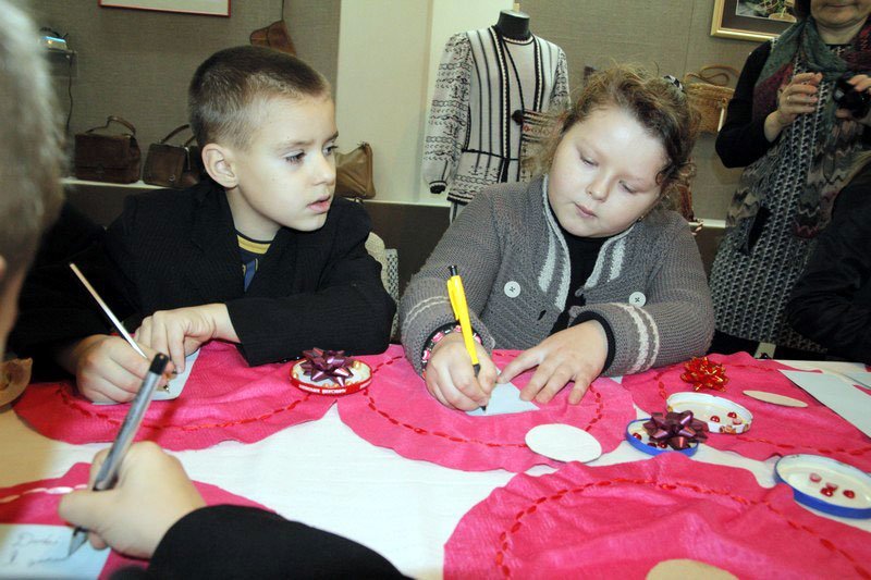 Наступним етапом стало творче заняття. Дітлахи із задоволенням взялися за виготовлення маленької подарункової торбинки з тканини – капшучка. Співробітники відділу етнографії заздалегідь підготували юним відвідувачам всі необхідні матеріали. Старалися всі: і дівчатка і хлопчики. Адже це була не просто торбинка, яку вони прикрасили бантиками і намистинами, а скрабничка їхніх добрих справ, записаних на кольорових смужках паперу. Напередодні Різдвяних свят сувенір стане приємним сюрпризом для батьків малечі.