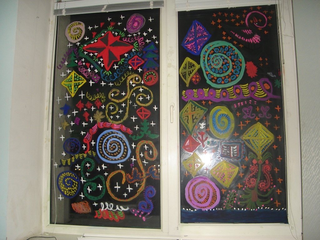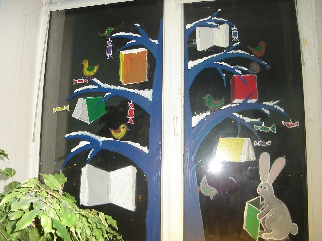 В таку трішки незимову пору, ці вікна стали окрасою дитячої бібліотеки, додали хорошого новорічного настрою і віри, що світ все ж таки яскравий і красивий, а особливо, коли це показують і створюють самі діти.