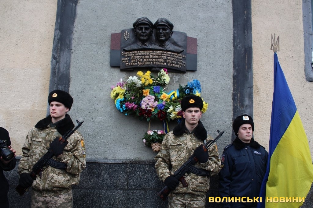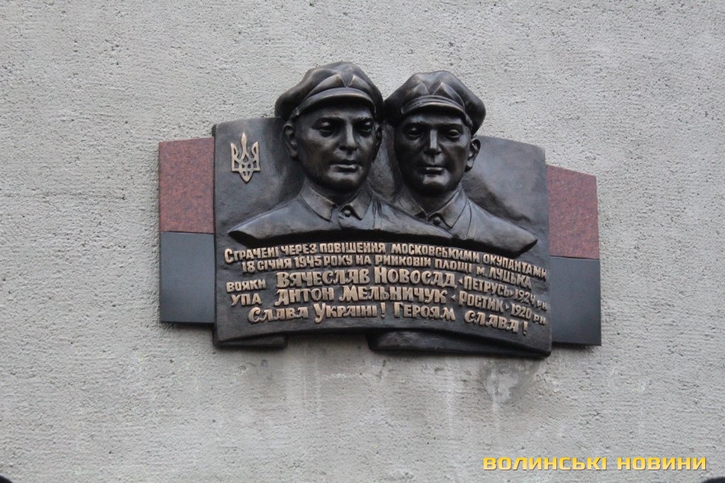 Оновлену меморіальну дошку волинським упівцям В’ячеславу Новосаду та Антону Мельничуку відкрили на фасаді медичного коледжу в Луцьку. Учасники заходу зауважили, що страта українських Героїв московськими окупантами відбулася приблизно на тому ж місці, де встановили пам'ятний знак.